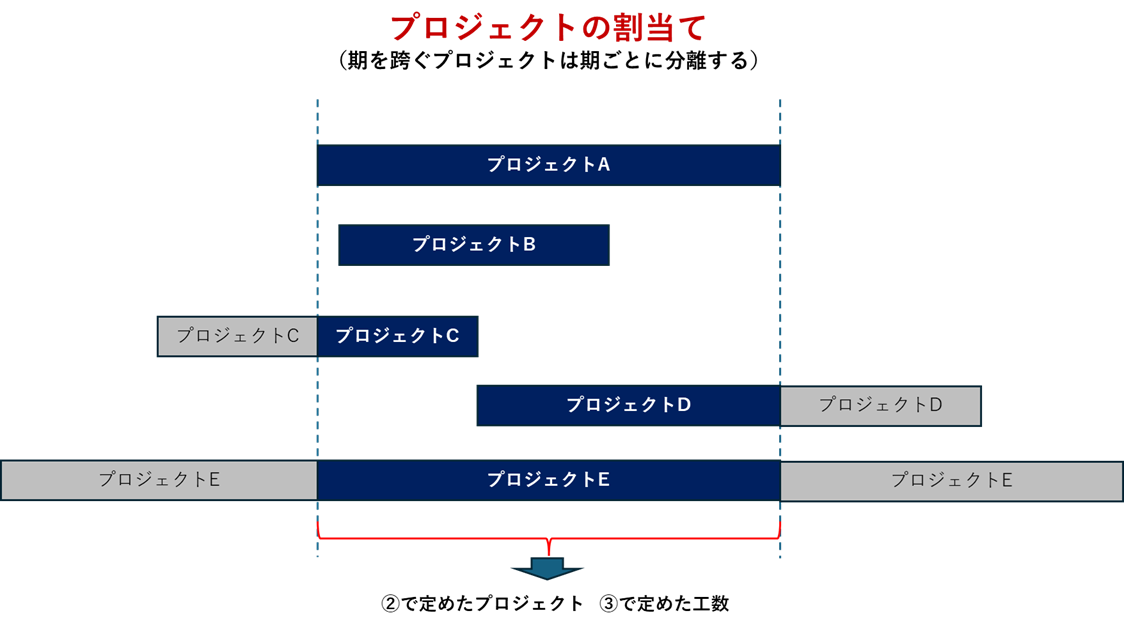 ④ ②で定めた担当者と時間を③で定めたプロジェクトと工程に割り当てる